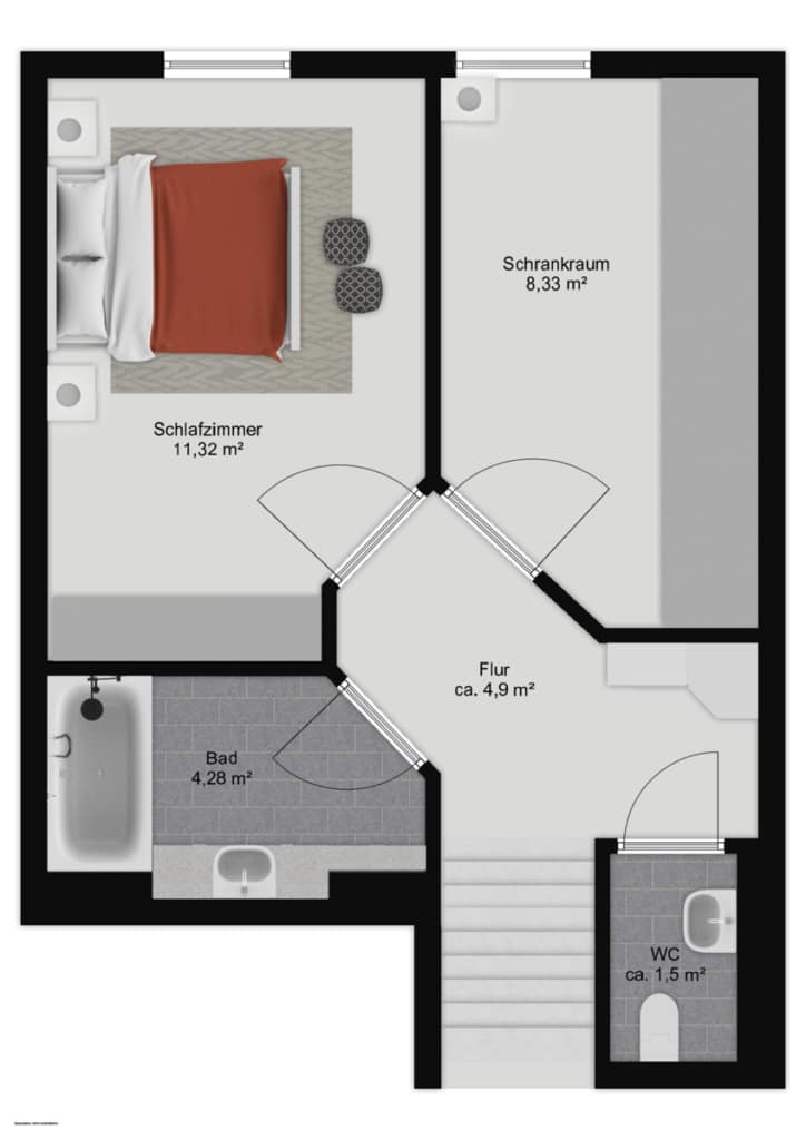 • Schlafzimmer mit angrenzendem Schrankraum (auch als Kinderzimmer nutzbar)