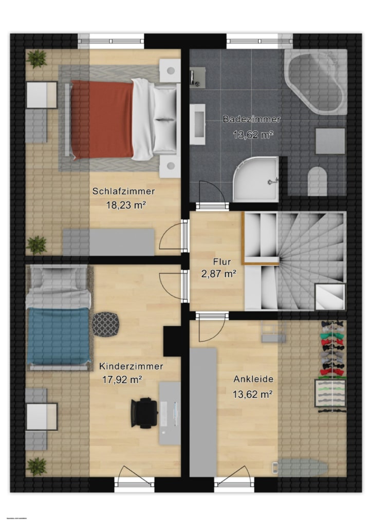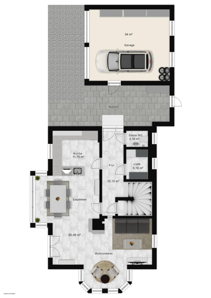 • Das Haus liegt auf einem großzügigen Grundstück mit 983 m² Fläche und südlicher Ausrichtung, wodurch die Räume lichtdurchflutet und freundlich wirken.