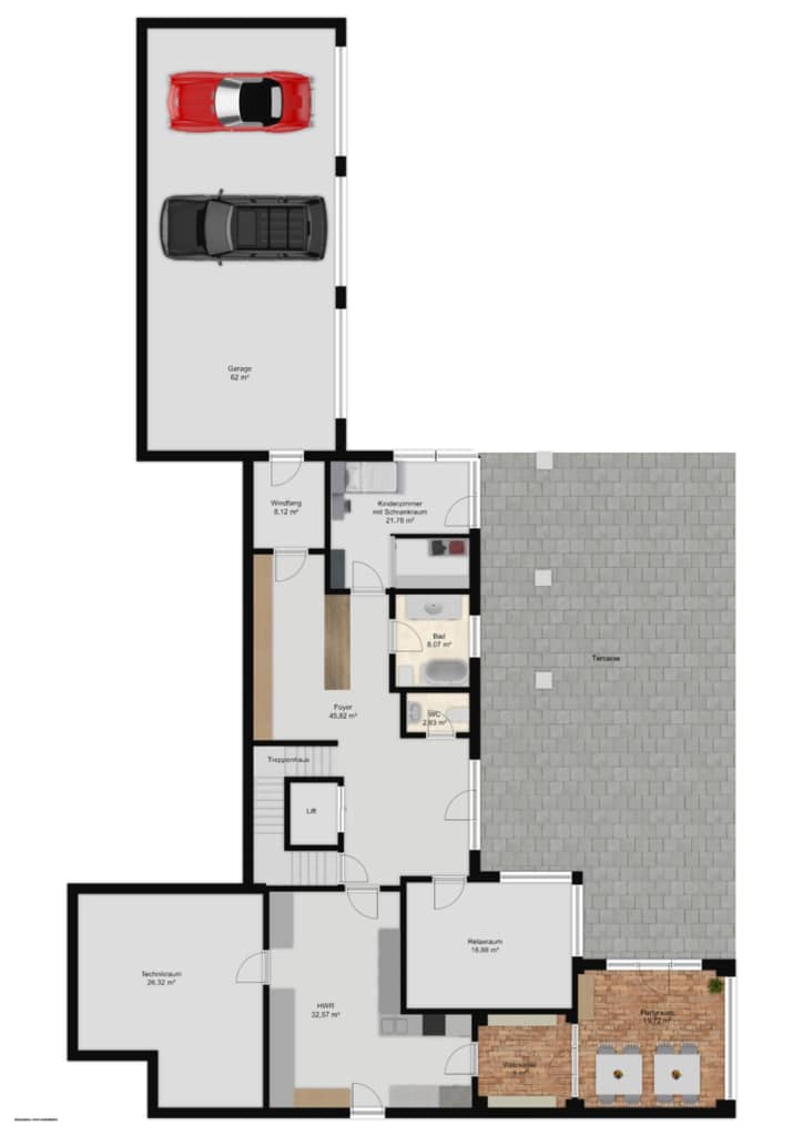 Ein rustikaler Weinkeller mit angrenzendem Partyraum eignet sich ideal für gesellige Abende in privatem Rahmen. Durch den direkten Zugang zur Terrasse gelangen Gäste ins Freie, ohne den Wohnbereich zu betreten – durchdacht, komfortabel und diskret zugleich.