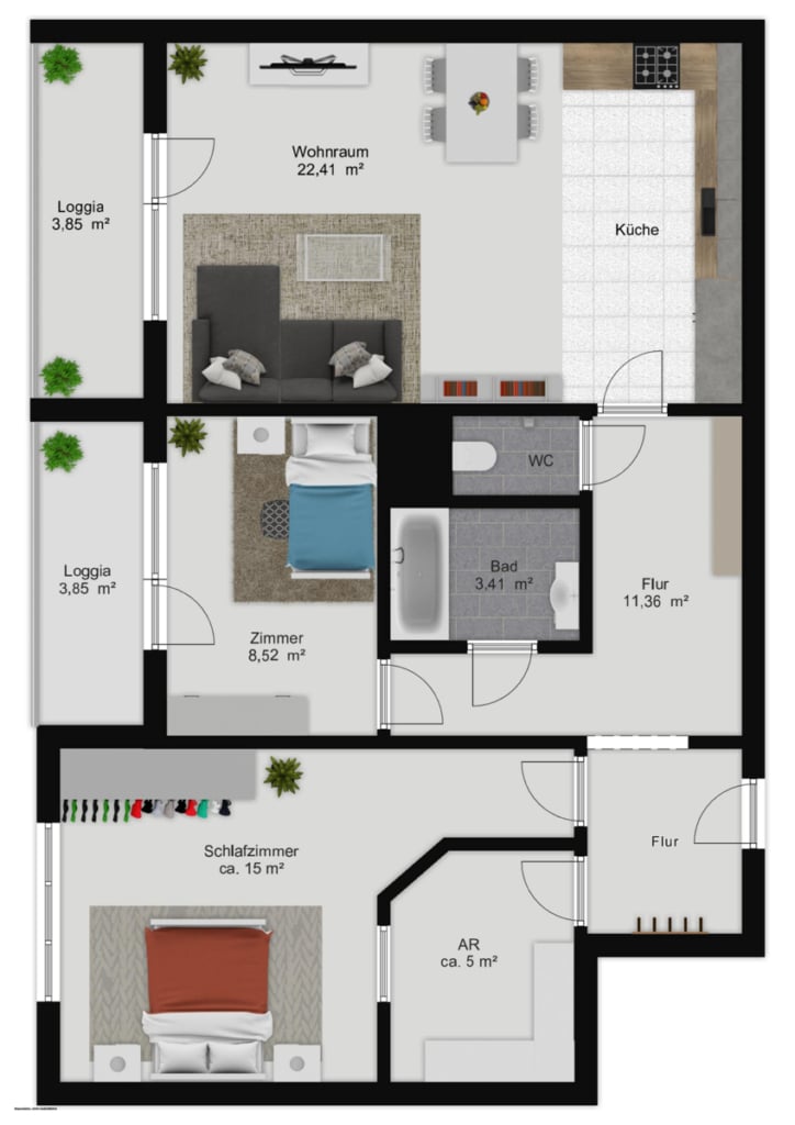 • Wohnfläche ca. 67 m² + 2 Loggien je ca. 4 m²