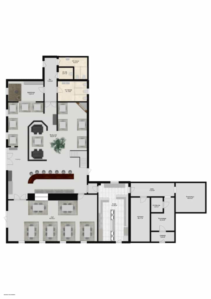 • Voll ausgestattete Küche, Kühlräume, Lager & Mitarbeiterbereiche