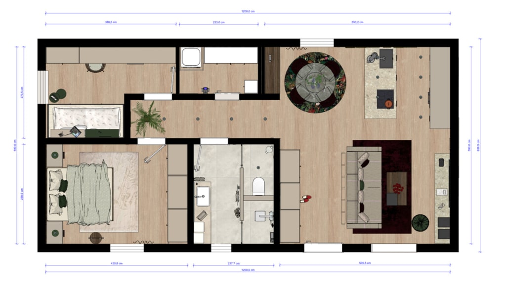 Das Modulhaus wird schlüsselfertig ausgeführt und überzeugt durch eine klare Formensprache, hochwertige Materialien und eine durchdachte technische Ausstattung – ideal für Paare, innen oder eine kleine Familie.