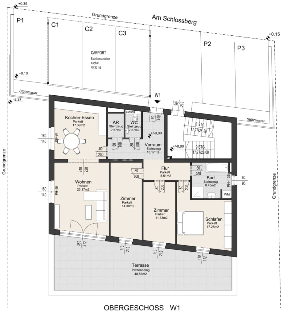 Diese exklusive Penthousewohnung vereint Großzügigkeit, Komfort und Design auf höchstem Niveau. Dank der Hanglage erreichen Sie Ihr neues Zuhause barrierefrei direkt vom Carport oder Parkplatz – ganz ohne Stufen. Der perfekt durchdachte 4-Zimmer-Grundriss mit rund 112 m² Wohnfläche bietet Raum für Individualität, Rückzug und Repräsentation zugleich.