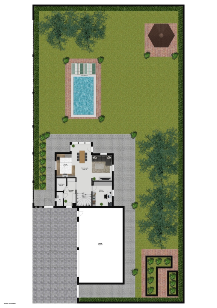 Dieses Einfamilienhaus vereint modernes Wohnen mit Urlaubsflair. Herzstück ist der überdachte Pool, der im Sommer zum Treffpunkt für Familie und Freunde wird. Ein durchdachter Grundriss, hochwertige Ausstattung und zahlreiche Extras machen dieses Haus zu einem echten Wohntraum.