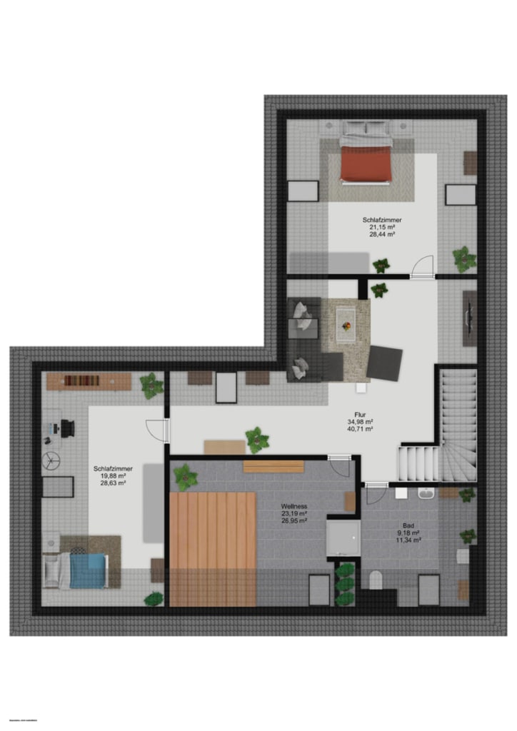 • Wellness im Obergeschoss: finnische & Infrarotsauna