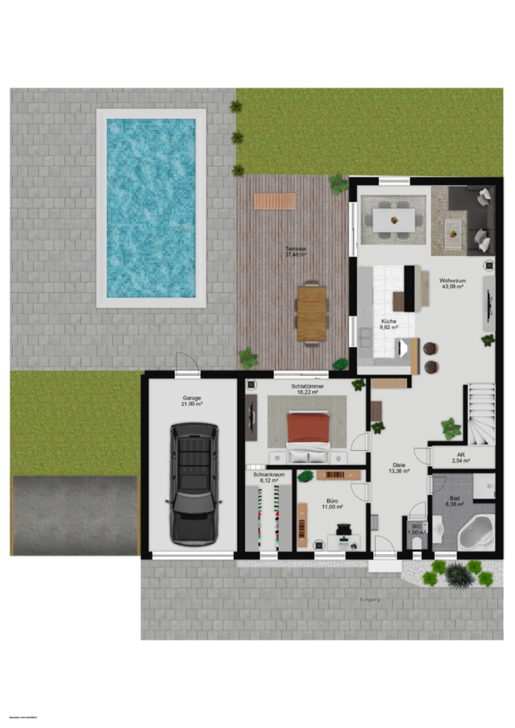 Fühlen Sie sich täglich wie im Urlaub mit der großen Sauna, Pool und einer weitläufigen Sonnenterrasse.