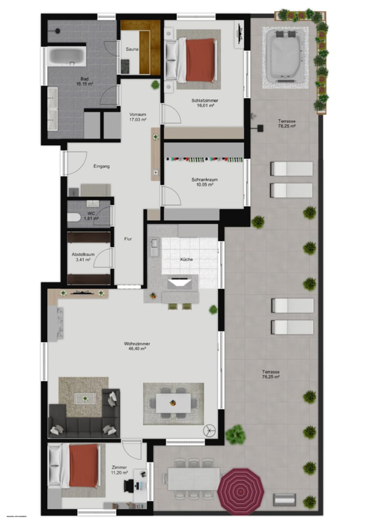 • Wohnfläche ca. 122 m² + Terrasse ca. 76 m²