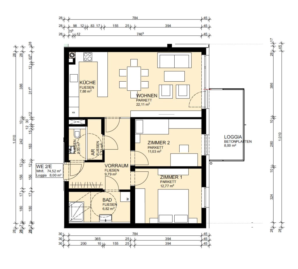 Gesamtmiete mit 1 TG-Platz: € 1.136/Monat inkl. BK & HK