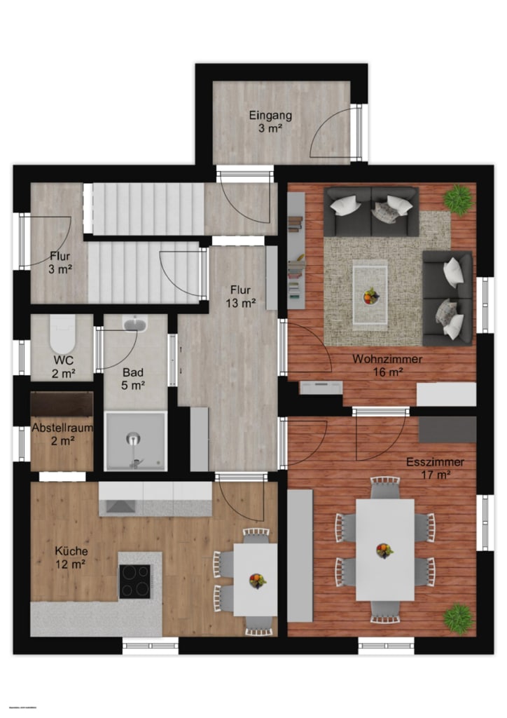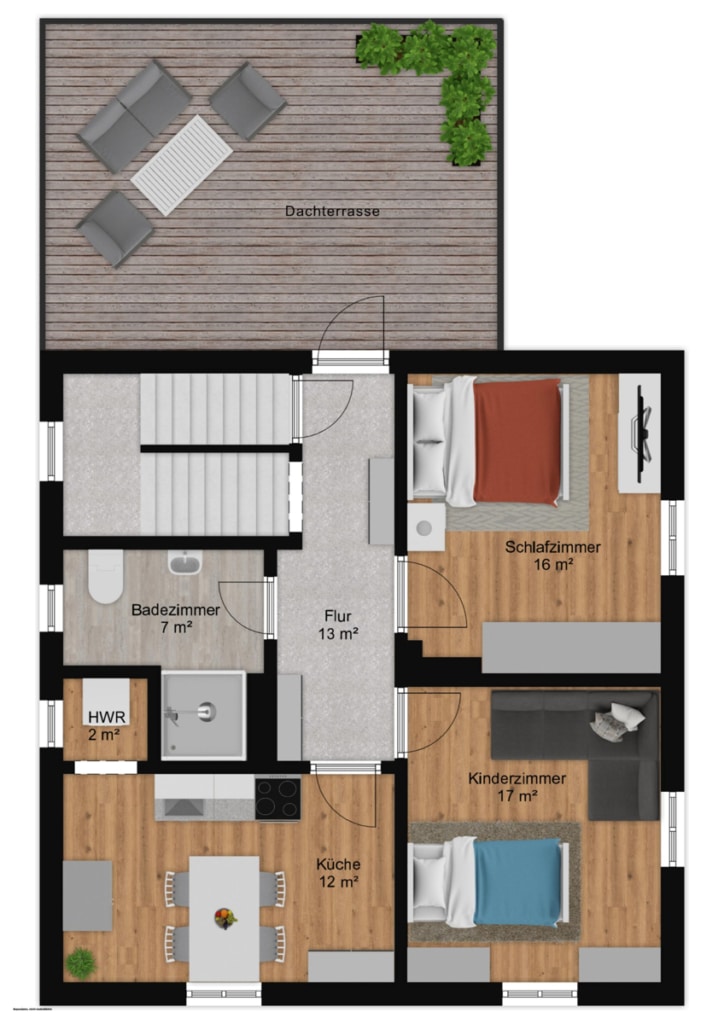 • Ein besonderes Highlight ist die großzügige Dachterrasse oberhalb der Garage – ein sonniger Rückzugsort mit viel Potenzial zum Gestalten und Genießen.