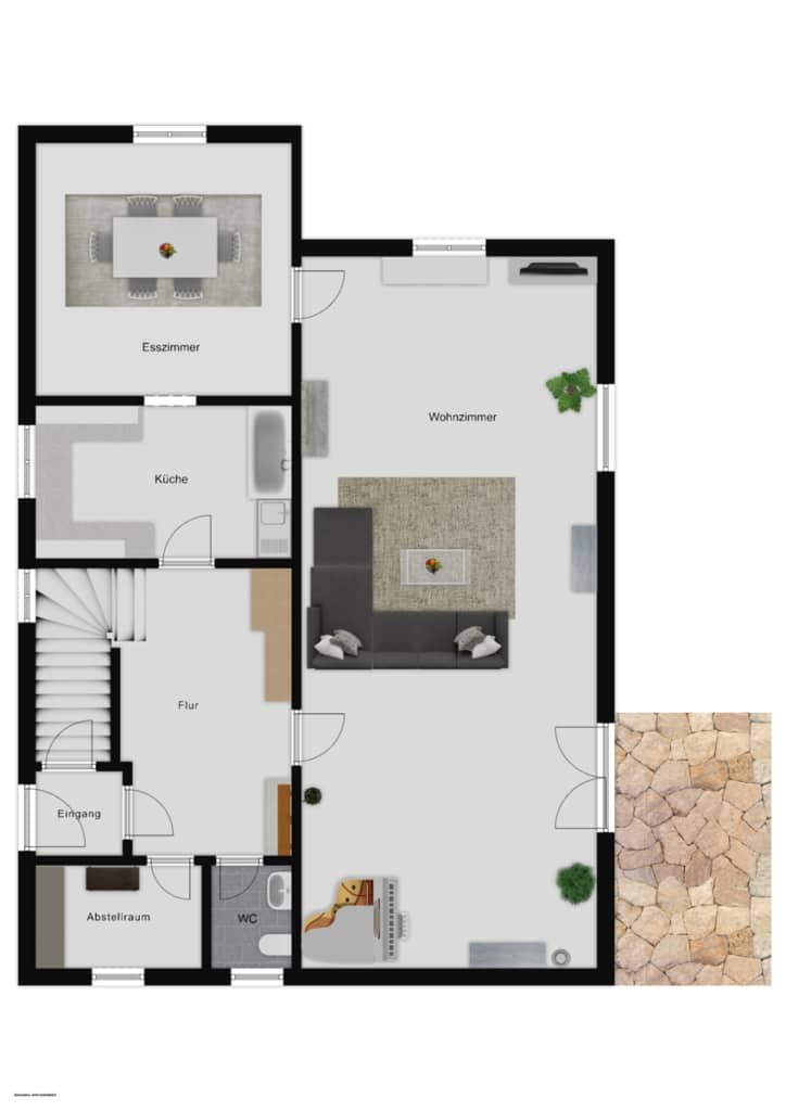 • EG: Wohnzimmer, Esszimmer, Küche, WC, AR, Terrasse