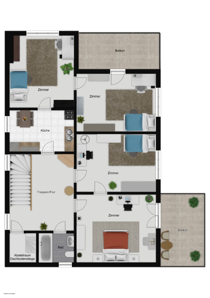 • OG: 4 Schlafzimmer, Küche, Bad, 2 Balkone