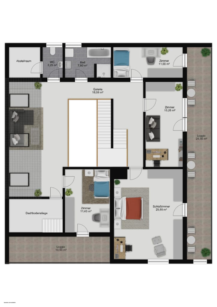 • Vier Schlafzimmer, zwei Loggien & 2 Terrassen