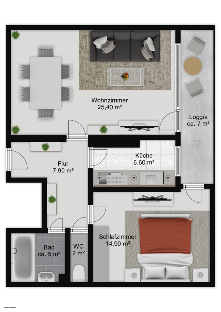 • Wohn- & Schlafzimmer mit Loggiazugang